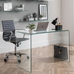 This Amalfi bent glass desk is beautifully crafted from a single sheet of tempered glass, bent and moulded into a curvacious design with no joins or fixings. From a collection of three pieces, the Julian Bowen Amalfi clear glass range will create the feeling of more space in your home, whilst adding a touch of elegance. Featured with the Gio Office Chair in Black.