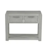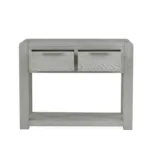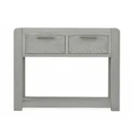 The range features a radiused butchers’ block top and has been finished in a durable grey stain, bring out the natural grain of the timber.