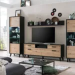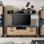 This gorgeous and aesthetic living room furniture set has been hand-picked to add a little excitement to your home. The stunning combination of wood and glass in this set will add a touch of class. It consists of a wall shelf, a TV cabinet and two display cabinets which will add a multitude of storage options to your living room.