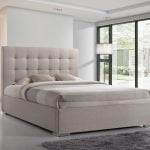 The Benin fabric bed frame is the height of bedroom luxury. With its striking tall headboard and lower footboard this piece adds a sense of presence and space to your bedroom. The chrome corner feet add a touch of modernity to this stylish piece and the bedstead is upholstered in a soft weave fabric which comes in two neutral shades. The sprung slatted base and thick centre support bar make the Benin comfortable and durable.