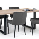 The Berwick dining table has been designed with a rustic oak finish top with emphasised natural wood grain. The industrial-style, black legs offer a stable structure that contrasts with the oak – providing a statement piece for your home. Paired with the Luxe Chairs, which are beautifully upholstered in a luxurious velvet, this set perfectly creates a contemporary aesthetic in your dining area