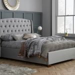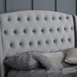 The Birlea Balmoral Fabric Bed Frame is upholstered in a luxurious grey velvet and features a wingback headboard with beautiful tufted detailing.
