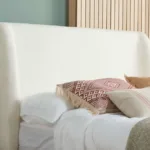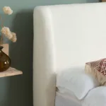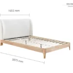 The Halfden bed is a modern classic. Characterised with a soft touch upholstered Bouclé headboard and strong wooden frame, this distinct bed design is an ideal bed for modern bedroom decor.