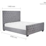 The Marquis bed is upholstered in a luxurious grey velvet and features a beautiful tufted detailing headboard.