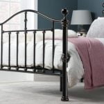 A traditional piece, the Victoria steel bed features an elegant finish that accentuates the detail in the framework.