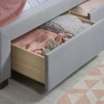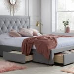 The Birlea Woodbury Storage Bed Frame is an elegant bed frame comes with a striking diamond tufted headboard that will compliment any bedroom. Upholstered in a grey luxurious fabric and features handy storage drawers to stowaway away your belongings. The Woodbury Storage Bed Frame has a solid slatted base provides firmer support and allows air to circulate beneath the mattress.
