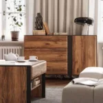 An elegant sideboard cabinet that is made from 16mm laminated board with metal legs. It features a single hinged door with three drawers and one shelf, all of which are handle-free. The BG-07 will be a nice decoration in your living room.