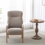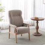 Fabric back and seat with sturdy wooden arm rests and finish, making sure you keep the right posture.