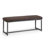 The Brooklyn Upholstered Bench is upholstered in a vintage brown faux leather finish. this dining bench offers a stunning retro design. The Brooklyn Upholstered Bench offers a vintage edge featuring industrial trapeze style gunmetal legs. This spacious bench can seat up to 2 people, perfect for a wide range of modern decor. Part of the Julian Bowen Brooklyn Dining and Occasional Collection.