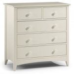 Cameo is a beautiful stone white lacquered bedroom range. Its timeless shaker design is the perfect accompaniment to any interior style and is perfect for grown-up bedrooms and children’s bedrooms alike. Solid pine frames ensure a sturdy and durable construction.The Cameo 3+2 chest offers a great storage solution with 2 small drawers and 3 large drawers.
