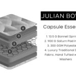 The Capsule Essentials Mattress offers a 13.5 gauge bonnell spring unit with a 900 gauge Saturn Pad Insulator pad and 300G polyester pad filling to ensure you get the best night’s sleep. Finished in a soft touch Damask fabric with a quilted border and hand tufted felt washers, this mattress is made to suit everyone. Available in a single, double and king size, the Essentials Mattress is part of the Capsule Mattress Collection.