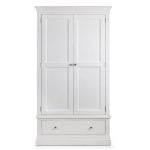 The Clermont 2 Door 1 Drawer Wardrobe is part of the Clermont Bedroom Collection. It is finished in a striking white lacquered finish, with simple clear lines that add a feeling of light and space. Crafted from Pine and MDF, featuring brushed steel handles, this elegant French inspired design is suitable for both contemporary and traditional settings. The Clermont 2 Door 1 Drawer Wardrobe offers a generous hanging space, along with a full width drawer for bulkier knitwear.