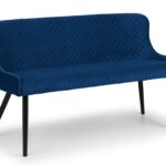 The Como extending dining table is a sleek, modern design finished in a crisp white high gloss with a sturdy chrome pedestal base. This spacious table features a butterfly extension system that is easy to use and stores within the table when not in use, comfortably seating 6 people. This set is accompanied by 2 Luxe Chairs and a Luxe Bench upholstered in a grey or blue velvet fabric with luxurious quilted detailing. Featuring contemporary black painted legs.