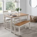 The Coxmoor dining table has been beautifully crafted from the finest, solid white oak, for a natural yet contemporary look to your dining room. The dining table has a rich oiled finish for added durability and to enhance the woods real natural grain. Coxmoor chairs, crafted from lacquered oak and linen seats, matching almost any décor. This classic, timeless design adds extra comfort for you to enjoy your daily meals. The Coxmoor Oak Bench is crafted from Solid American White Oak with a contemporary white & oak finish. Bringing a classic and timeless design into your home, suitable for a wide range of décor