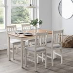 Solid Oak Dining Table in a Rich Oiled Finish and featuring a matching Solid Oak Dining Chair with padded Brown Faux Leather Seat.