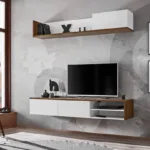 Dallas is a functional, modern, and brilliantly crafted entertainment unit that impresses with its high-quality craftsmanship and features one TV cabinet and a wall shelf, offering a total of three closed and two open compartments as well as ample shelving space for storage. It is available in two different color combinations, so it will easily blend into any modern or contemporary decor. Made from 16mm laminated board, it is a durable piece of furniture that will last.