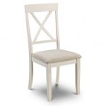 The Davenport Dining Chairs is a Shaped, Cross Back Chair, in a Subtle Ivory Lacquered Finish and with a Faux Suede Upholstered Seatpad.