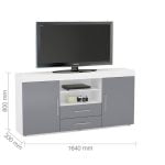 Featuring 2 handy pull out drawers this is ideal for storing DVD’s plus an open compartment for electronic devices and 2 hidden storage cabinets.