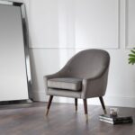 Our Elliot armchair combines high quality design with luxurious materials. Featuring beautifully curved arms and back upholstered in a chic grey velvet, and oak legs tipped with timeless gold – this piece is likely to make any area look classy and chic, whilst keeping you comfortable.