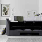 The slim foot end of the Fal TV Ottoman bed can accommodate screens of up to 43”. This facility is complemented by remote control access and a convenient under-bed storage shelf. Designed to hide all wires and cables, the Fal also has space for a Sky box or multimedia player. Side access to a floating floor ottoman storage area (610-859 L) provides easy access to any items stored within.