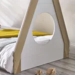 Transform your child’s bedroom into a whimsical retreat with the Festival Low Sleeper – an enchanting haven that sparks joy and fuels imagination! This teepee-style bed, with a charming, white and wood finish, offers a magical space for endless adventures and creative play. Meticulously crafted with attention to detail, the bed features a unique circle detail at the end, adding a playful touch that invites curiosity and wonder. Designed with safety and comfort in mind, the low sleeper style ensures easy access for little ones, making bedtime a breeze. Witness as each night unfolds into a magical journey, filled with dreams and boundless creativity.
