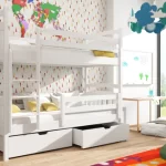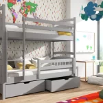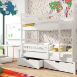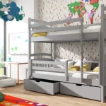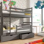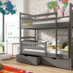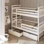 The Gabriel bunk bed features a universal ladder that can fit on either side to support even the tallest of kids. The ladder also adds privacy if your child wants to escape to the top bunk. When it’s time for a good night’s sleep, Gabriel unique no-wobble corner posts ensure that your bed is sturdy and safe. In addition, two under-bed drawers provide storage to keep clutter off the floor.
