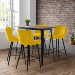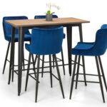 Crafted from solid Elm wood and satin black powder coated steel, The Grafton Bar Table offers a suitable dining or drinking area for up to 4 people. Paired up with 4 striking Luxe Blue Velvet Bar Stools, with luxurious quilted stitching, adding a modern, industrial feel to any room.