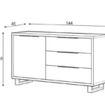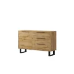Accommodate your home storage needs with the Halle sideboard cabinet. Made of 16mm laminated board, it is sturdy and durable. It features a hinged door and three drawers for providing you with plenty of space for storage. The furniture has black metal legs that add a touch of modern flair to your decor. Traditional in appearance, it will complement any living room or dining area.