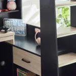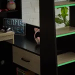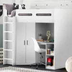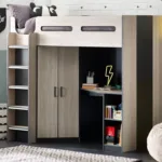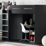 Designed with perfect functionality, the Hercules Highsleeper is the ultimate bed for your child. The angled wardrobe provides ample space for clothing, whilst the built-in shelving is great for all their files, folders, trainers, or games to stay organised. With glow-in-the-dark steps, and colourways of woodgrain and anthracite, white, and anthracite, there is an option for any interior style.