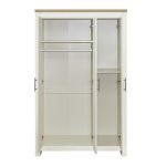 The Highgate 3 door wardrobe is spacious behind double doors, featuring a hanging rail. The doors are finished off with contemporary silver handles.