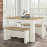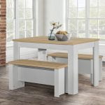 This is an elegant dining table that will look beautiful in your dining room or even your kitchen. The beauty of a table and bench set-up is that you can squeeze plenty of people in, making it perfect for families as well as those who enjoy entertaining.