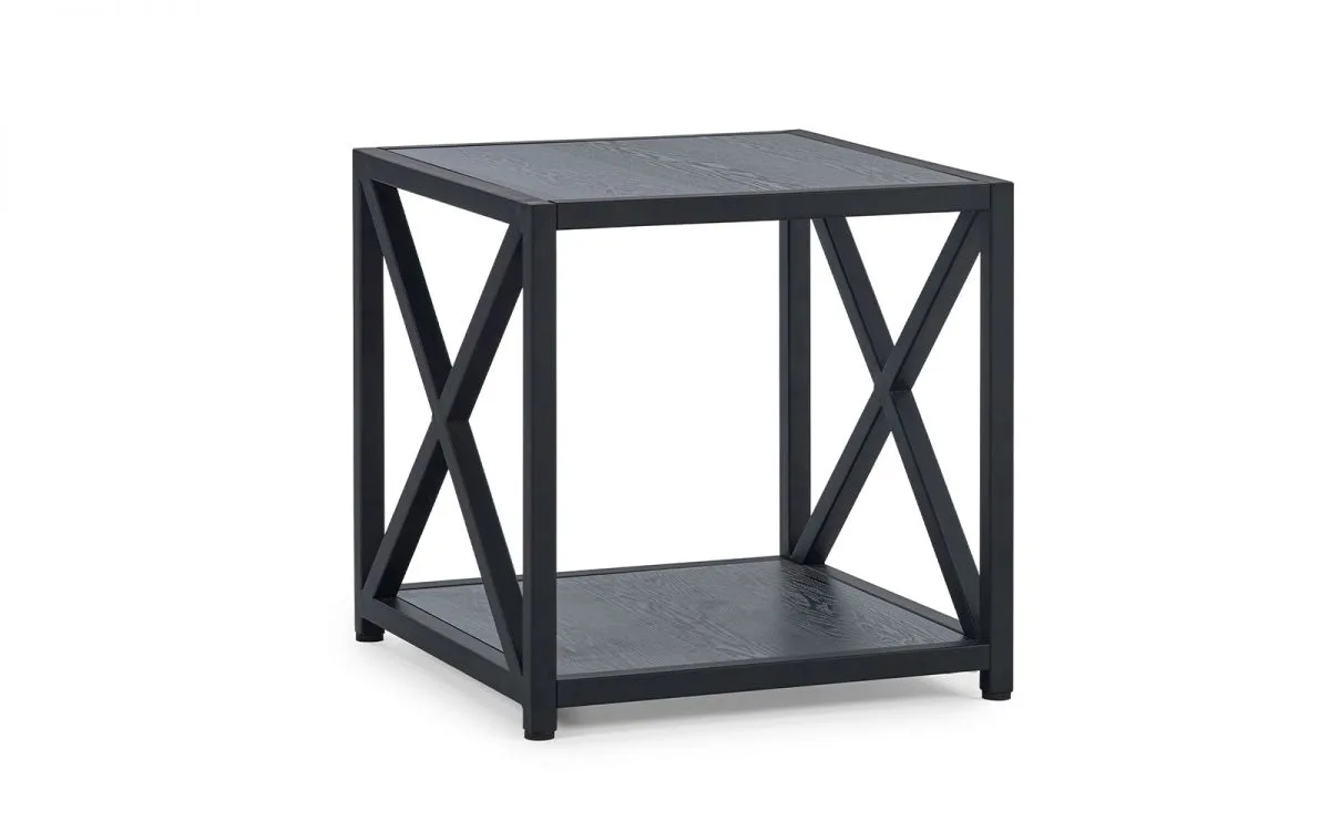 Complete your living space with the Lima Lamp Table. With a striking cross frame design and finished in a stunning black ash, the Lima will add a touch of contemporary class to your home. With a shelf underneath, this piece is both functional and leaves a gorgeous look.