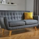 The Loft 3 Seater Sofa is a contemporary sofa with a hint of Scandinavian-inspired retro styling, upholstered in soft grey fabric to combine comfort and style.