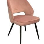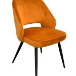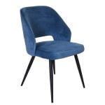 This comfortable chair is upholstered in navy, rust, teal mustard, pink or grey velvet with a quilted back and black metal legs.