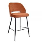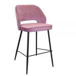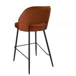 This comfortable barstool is upholstered in navy, rust, teal mustard, pink or grey velvet with a quilted back and black metal legs.