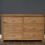 The Madison Wide Chest is hand crafted from solid oak with a smooth wax finish the Madison range would make a fantastic addition to any home. The wax finish shows the magnificent natural beauty of the premium oak as well as giving the wood a layer of everyday protection. Add the modern chrome handles to the range to give a modern yet classy dining range. Available in oak, grey and oak or white.