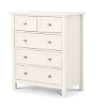 Maine is an elegant New England style range of bedroom furniture. The combination of exquisite dove grey or surf white lacquered finish with characteristic side panelling and detailed chamfered cabinetry makes for a soothing and refined aesthetic with timeless appeal, while delicate pewter handles add the perfect finishing touch. The Maine 3+2 drawer chest offers great storage with three large drawers topped with two smaller drawers.