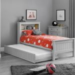 Crafted from MDF in a stunning dove grey lacquer, the Maine Underbed features characterisitic panelling, creating a refind asthetic. Forming an extra bed when needed for your guests, the Underbed can be neatly tucked away under its perfect companion, the Maine Bookcase Bed, when not in use forming the ultimate space saving solution.