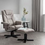 The Malmo reclining swivel chair and stool is upholstered in a soft touch faux leather with a walnut colour laminated base. This chairs offers the ultimate in complete sitting comfort and relaxation.