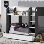 Beautifully designed with a pull-out trundle, our Mars bunk is solidly crafted to ensure the safety of your children. With shelving for books and frames, this bunk has huge practicality; combined with a timeless aesthetic, is perfect for your children’s’ bedroom. Available in Charcoal, Taupe or White.
