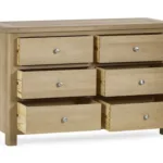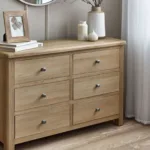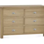 Elevate your bedroom with the Memphis 6 Drawer Chest – a blend of rustic charm and contemporary sophistication. Finished in exquisite limed oak with curved edging, this chest seamlessly combines style and functionality. With six spacious drawers, it offers ample storage for your belongings. Customise its look with a choice between classic polished silver handles or opt for a subtle variation with alternative cupped handles.
