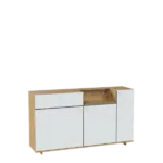 Create the perfect addition to your dining room with the MC-07 sideboard. Beautifully finished in a timeless yet stylish combination of Oak Artisan and Alpine White, it features three hinged doors and one drawer for covert storage, as well as a single, LED-compatible open compartment for decorative items.