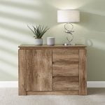 Stuck for space? No worries – this impressive furnishing piece is a storage genie! Don’t be fooled by the compact design which incorporates multiple drawer and shelf options, while creating a classic look and feel that will enhance any living space. Perfect for storing everyday dining accessories or as a chic repository for home office essentials. Featuring a slender column of three drawers plus side cupboard – all featuring recessed handles. The unique oak-effect 3D paper foil finish provides a highly realistic wood-style finish that closely mimics oak grain.