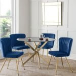 Montero is a strikingly elegant dining table which combines gold metal and glass to create a modern and stylish aesthetic. The intertwined legs leave a unique look which also provide a sturdy support for the table – paired with the Cannes Dining Chairs, this set creates a beautifully contemporary look in your dining space.