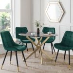 Montero is a strikingly elegant dining table which combines gold metal and glass to create a modern and stylish aesthetic. The intertwined legs leave a unique look which also provide a sturdy support for the table – paired with the Hadid Dining Chairs, this set creates a beautifully contemporary, classic look in your dining space.