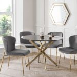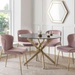 Montero is a strikingly elegant dining table which combines gold metal and glass to create a modern and stylish aesthetic. The intertwined legs leave a unique look which also provide a sturdy support for the table – paired with the Harper Dining Chairs, this set creates a beautifully contemporary, classic look in your dining space.