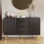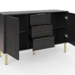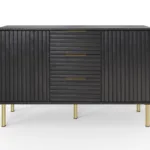 Discover the allure of our Nerva Sideboard, a functional masterpiece that combines elegance and storage. The wooden panels, enhanced with wood grain texture, create a sense of luxury and sophistication. With its captivating gold accents and sleek black design, the Nerva Sideboard is a statement piece that adds a touch of opulence to your dining or living area. In the Nerva Range, every piece is thoughtfully designed to offer a unique and exceptional experience. Whether it’s the coffee table, lamp table, sideboard, or TV unit, each one represents the perfect blend of elegance and functionality, allowing you to create a home that is truly a masterpiece.