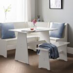 This classic corner design is perfect for any traditional or rustic home. Finished in a fresh surf white lacquer, the Newport corner dining set features high seatbacks and a bench with a classic, eye-catching design. This dining set is perfect for any kitchen or dining room with a small area.