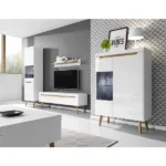 - White Matt carcass and White High Gloss with Oak Riviera decor and legs