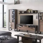 An exquisitely-designed living room furniture set with all the essentials for a modern home. The chic wall shelf provides ample storage space, while the TV cabinet, and the two tall multi-purpose cabinets look equally sleek whether standing alone or grouped together. Finished in a stunning combination of Okapi Walnut decor and black matt colour, this living room furniture set instantly adds a touch of elegance to any home.
